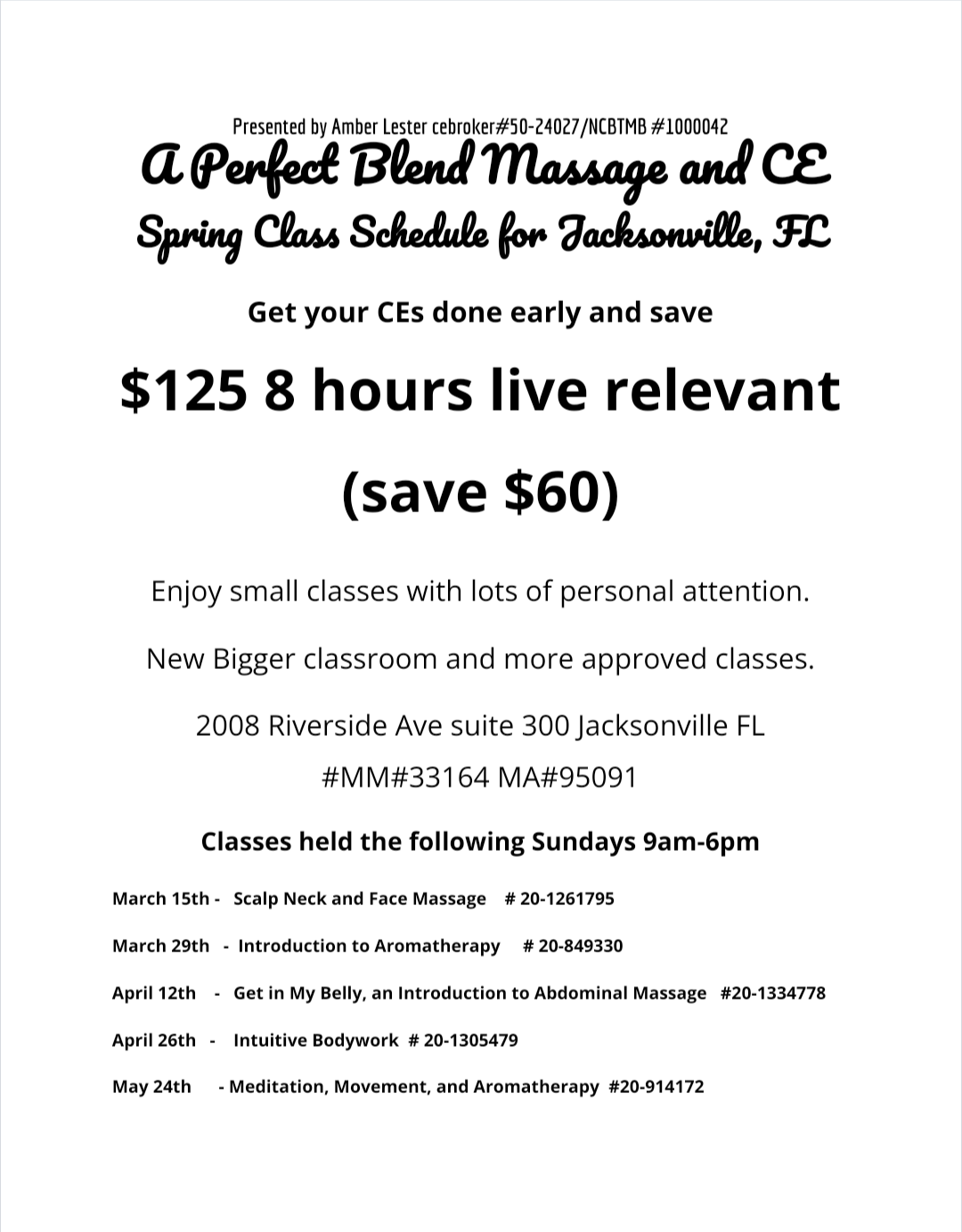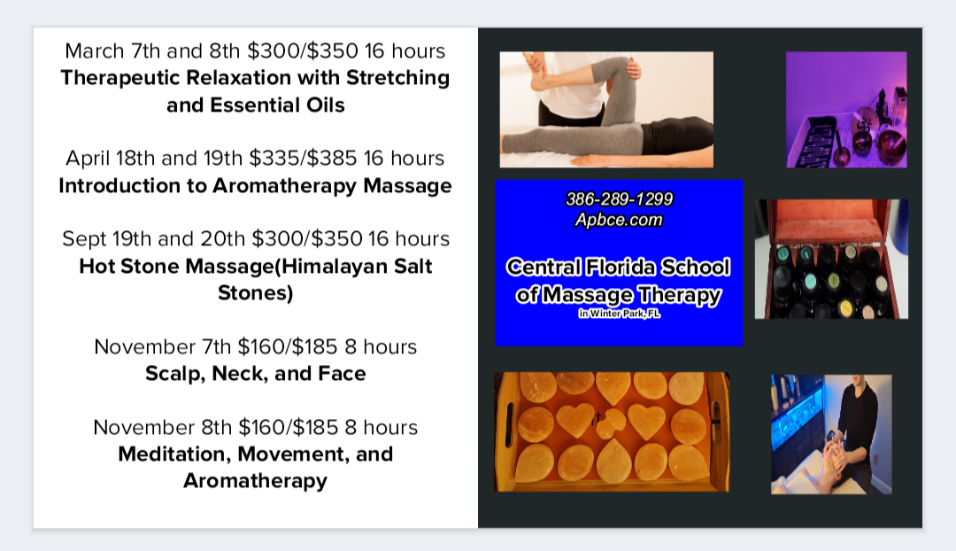A Perfect Blend Massage and CE (Jacksonville, FL), CFSMT (Winter Park, FL), and FSM (Gainesville, FL)